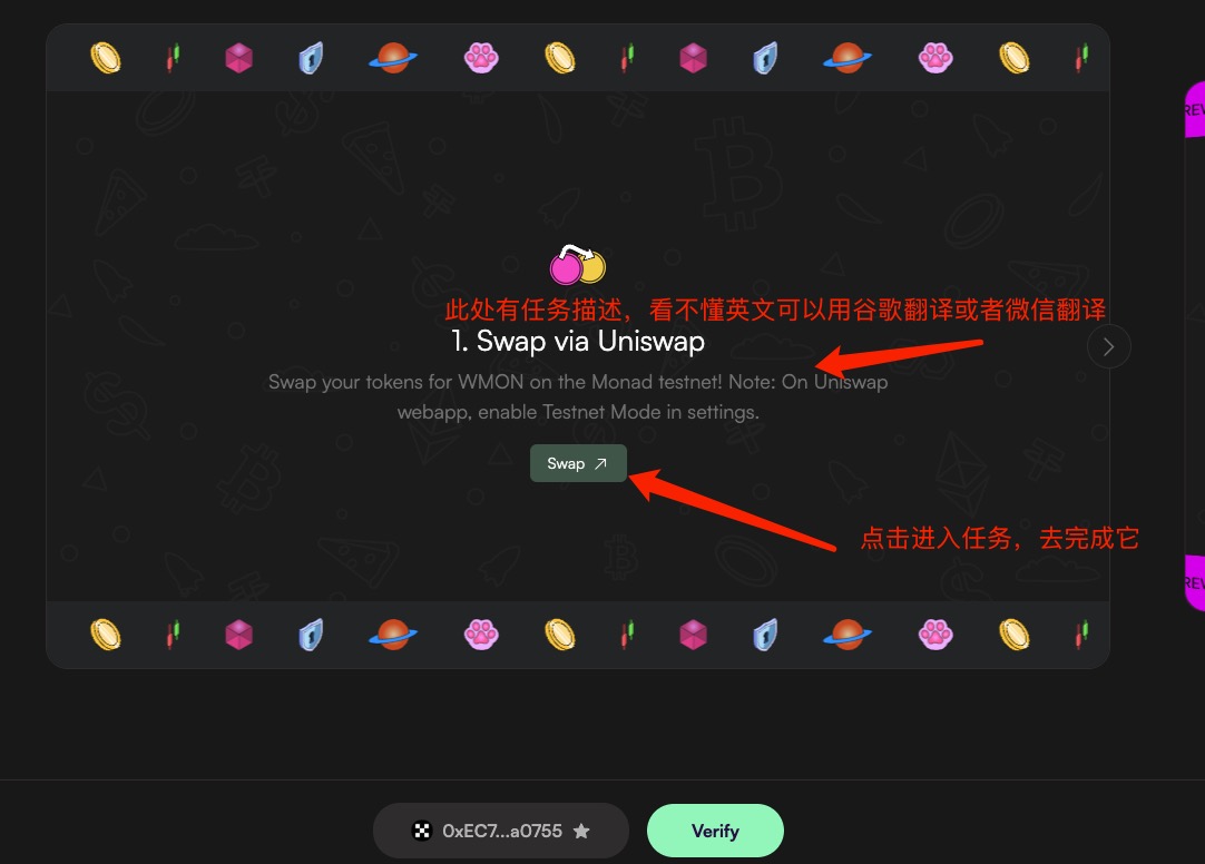 第四步:登陆之后,打开下面网站开始做交互。共15个任务,已有一个任务截止,做剩下的15个任务。这个活动可以一鱼多吃。及可以做Monad项目交互,也可以拿superboard任务积分(surerboard未来也有机会空投。),从下面第一个任务开始做起。