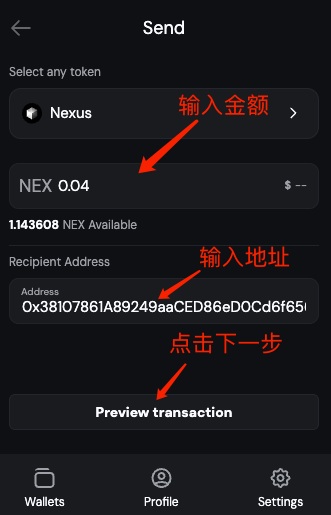 最后一步,将MINT的NFT发送到你的钱包,复制钱包地址去粘贴即可。